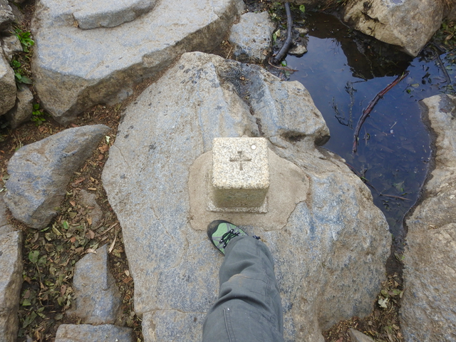 女体山の三角点(いつものポージング)